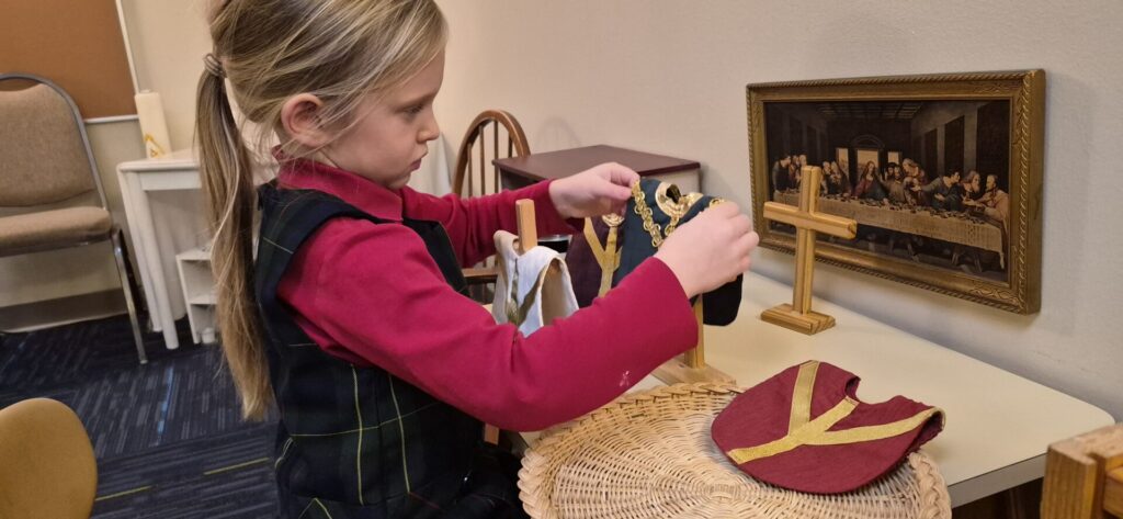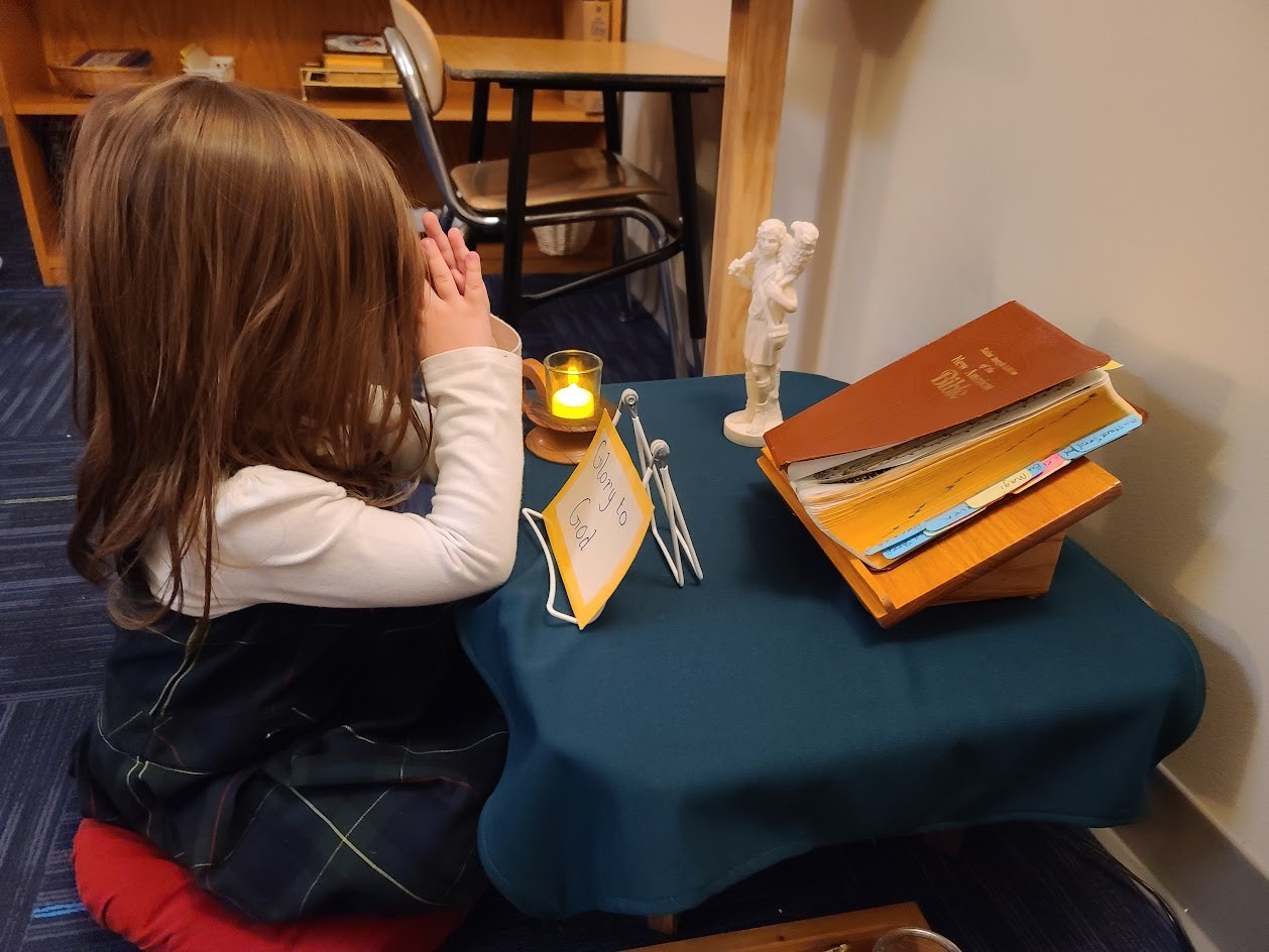 Each atrium includes a prayer corner that reflects the liturgical season through colors, prayers, songs, artwork, and Scripture readings—helping children enter more fully into the rhythm of the Church year.