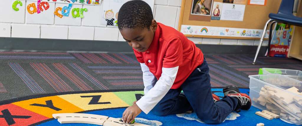 Enhanced learning spaces—featuring a music room and a large motor movement area enriched with Catholic elements—nurture the whole child: body, mind, and soul.