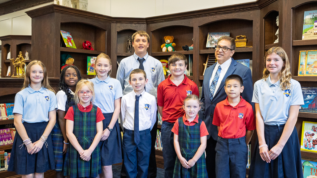 Virtue Families are intentional, multi‑grade groups that function as small school “families,” where students feel known, supported, and connected. Each family is represented by a beloved saint and a specific Catholic virtue, giving students a clear model to follow.